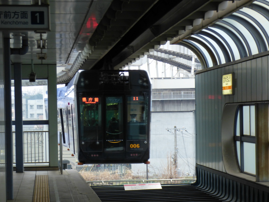県庁前駅は残念ながら向い側のホームに行くことができないので