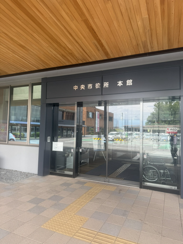 釜無川方面へ戻り、中央市市役所と設置場所の東花輪駅。