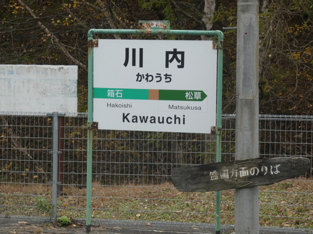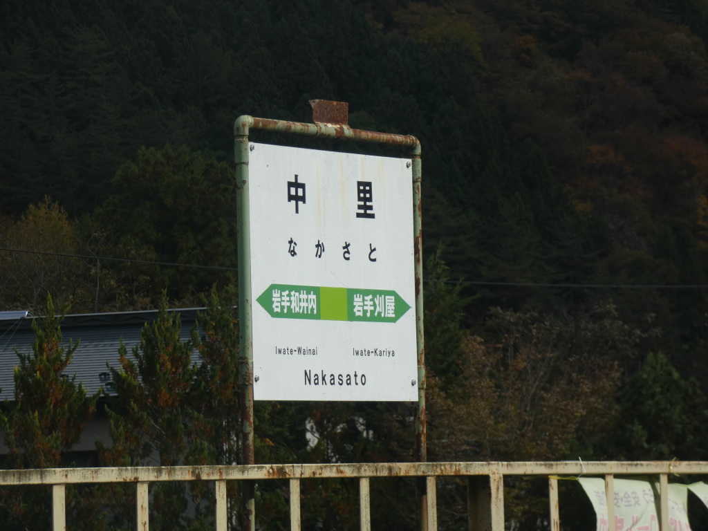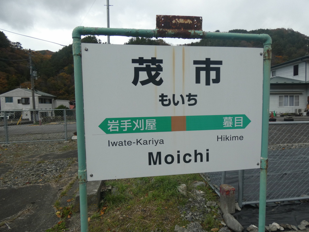 岩泉線のホームに駅名標が残っている。