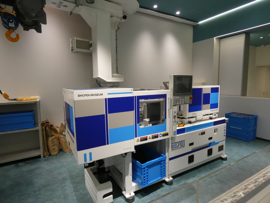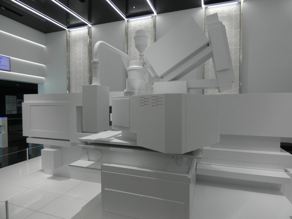 入口入ったエントランスには射出成形機の実物大模型と