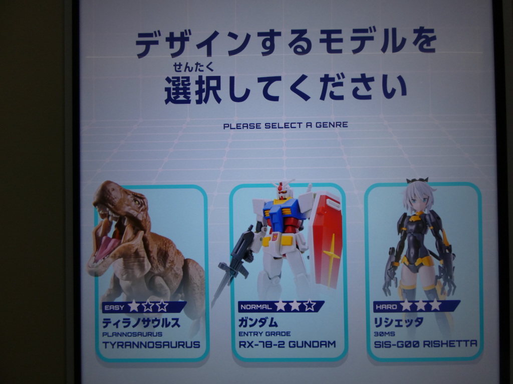 プラモデザイナー体験では3種のモデルから選択できます。